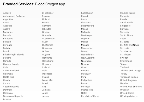Blutsauerstoffmessung der Apple Watch Series 6 zum Start in über 100 Ländern verfügbar