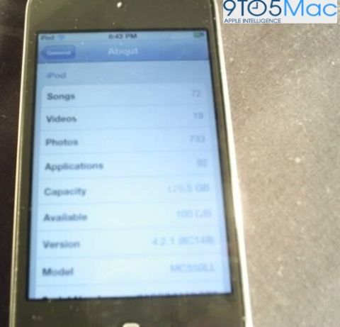 9to5Mac, die Bilder eines vermeintlichen iPod touch der 5. Generation aufgetan haben. Bevor die Euphorie hierüber jedoch allzu groß wird, sei angemerkt, dass selbst die Kollegen aus den USA die Bilder mit allergrößter Skepsis betrachten. Nichts desto trotz möchte ich sie auch an dieser Stelle zur Diskussion freigeben. Bemerkenswert sind an den Fotos vor allem zwei Dinge. Zum einen besitzt das Gerät bei gleichbleibendem Design offensichtlich keinen mechanischen Home-Button, sondern eine berührungsempfindliche Stelle dort, wo sich aktuell der Home-Button befindet. Zum anderen fallen die 128 GB an Speicher auf, die das Gerät bieten soll. Auf der Rückseite ist dort, wo normalerweise der Speicherplatz eingraviert ist das Kürzel "DVT", was für "Design Verification Test" steht und von Apple in der Tat auf Prototypen verwendet wird. Fraglich ist allerdings, warum auf den erst jetzt aufgetauchten Bildern noch immer iOS in Version 4.2.1 installiert ist. Auch wenn die Bilder mit Skepsis zu betrachten sind, könnte dennoch ein Fünkchen Wahrheit dran sein. Die Aversion von Steve Jobs gegenüber mechanischen Knöpfen ist hinlänglich bekannt und Apple hat in der Vergangenheit bereits mehrere Patente zu einem berührungsempfindlichen Gehäuse beantragt, weswegen der kapazitive Home-Butten durchaus möglich erscheint. Gleiches gilt für die Aufstockung des internen Speichers auf 128 GB. Die nächste Generation des iPod touch ist aller Wahrscheinlichkeit nach nicht vor September dieses Jahres zu erwarten.