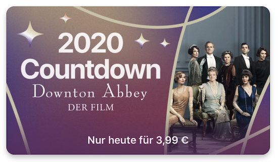 Das Weihnachtsfest rückt mal wieder näher und während sich bei manchen Freude und Besinnlichkeit breit macht, kommt bei anderen eher Hektik beim Weihnachtsshopping auf. Vor allem für Kinder bedeutet die Zeit bis zum Weihnachtsfest jeden Tag ein bisschen Freude beim Öffnen der Türen des Adventskalenders. Auch Apple bietet in diesem Jahr wieder eine Dezember-Aktion an und weitet diese gar auf 31 Tage, also bis zum Ende des Monats aus. Unter dem Motto "2020 Countdown" wird man dabei jeden Tag mit einem neuen Inhalt aus dem Film-Bereich des iTunes Store zum Sonderpreis beschenkt. Heute erhält man auf diese Weise die Filmfassung des Serien-Hits Downton Abbey für nur € 3,99 zu kaufen.