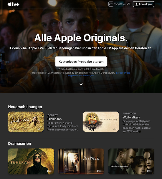 Unterdessen hat Apple erstmals seit dem Start von Apple TV+ die Webpräsenz seines Streamingdienstes überarbeitet. Seit wenigen Stunden präsentieren sich die Webseiten in neuem Look. Apple orientiert sich dabei am Apple TV+ Bereich in seiner TV-App. Während die meisten Nutzer Apple TV+ wohl über die jeweiligen Apps nutzen werden, können die Inhalte alternativ auch über die Webseite gestreamt werden.
