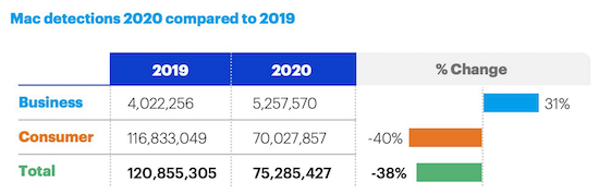 Insgesamt 38% weniger Malware auf dem Mac im Jahr 2020