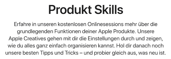 Aufgrund der Corona-Pandemie und dem damit verbundenen Lockdown sind auch die deutschen Apple Retail Stores derzeit geschlossen. Dies bedeutet selbstverständlich auch, dass derzeit keine "Today at Apple" Sessions in ihrer gewohnten Form stattfinden können. Apple hat hierzu jedoch in den vergangenen Monaten bereits einen kreativen Weg eingeschlagen und dieses Angebot ins Netz gebracht. Dies wird man künftig noch weiter ausbauen und auch die sogenannten "Produkt Skills" Sessions online anbieten. Dabei werden vor allem neuen Nutzern die Basisfunktionen von iPhone, iPad und Mac vermittelt.
