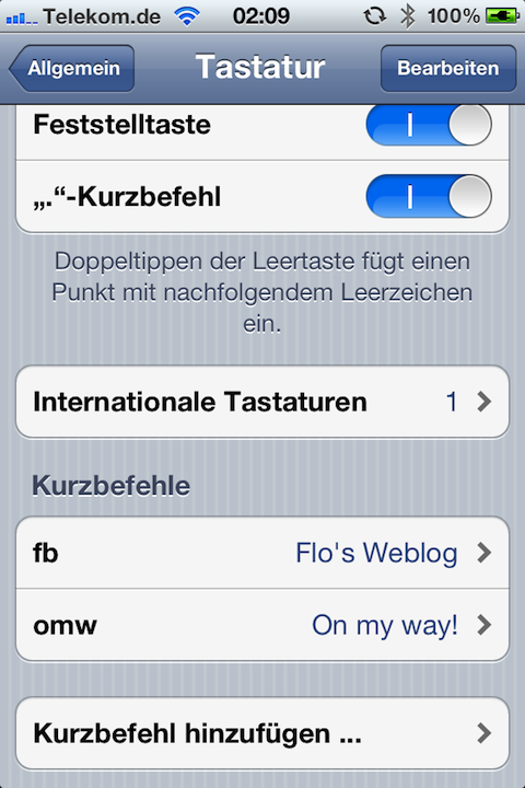 Ebenfalls nett: Systemweite Shortcuts. In den Einstellungen hinterlegt, braucht man künftig nur noch das Kürzel eingeben und es wird automatisch der zugehörige Text eingefügt.