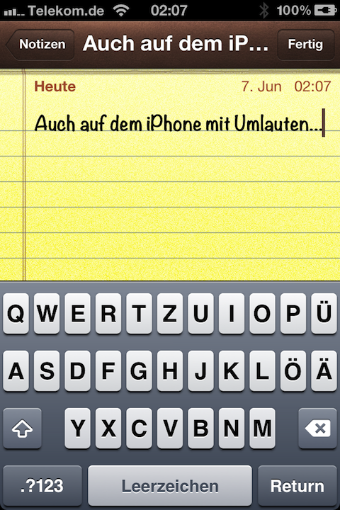 Aber in den Tastatureinstellungen verbirgt sich noch ein weiterer kleiner Schatz. So kann man die Tastaturbelegung hier von der Standard-Einstellung "QWERTZ" auf "Deutsch" umstellen, wodurch fortan an gewohnter Stelle die Umlaute auf der Tastatur auftauchen. Aus meiner Sicht mehr als angenehm!