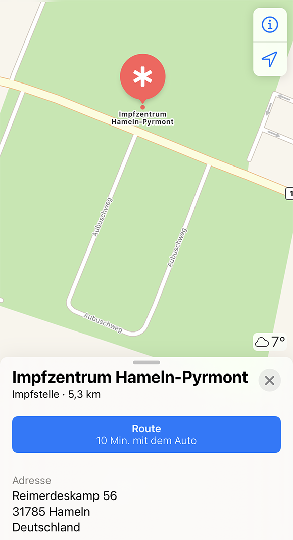 Per Pressemitteilung hatte Apple gestern bereits darauf hingewiesen, dass die hauseigene Karten-App nun auch in der Lage ist, Impfzentren in den USA anzuzeigen. Ohne zugehörige Erwähnung gilt dies inzwischen auch für Deutschland (mit Dank an alle Tippgeber!). So lassen sich über die Suchefunktion innerhalb der App Impfzentren in der Umgebung oder an einem angegebenen Ort auffinden und auch direkt eine entsprechende Route dorthin anzeigen. Auch wenn zum jetzigen Zeitpunkt nur die wenigsten Nutzer hiervon Gebrauch machen können, ist das Vorhandensein der Anzeige eine gute und sinnvolle Vorbereitung für die hoffentlich ab dem zweiten Quartal startenden Massenimpfungen in Deutschland. In Google Maps steht die Funktion ebenfalls bereits seit einiger Zeit zur Verfügung.