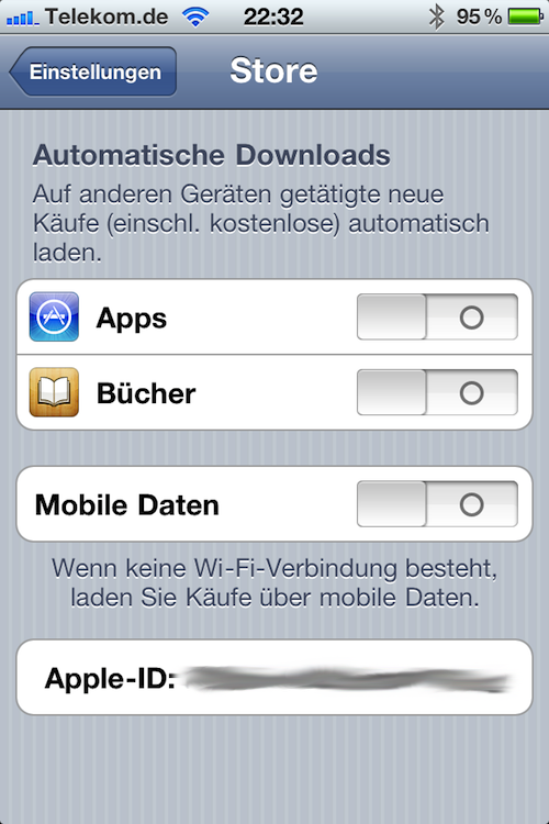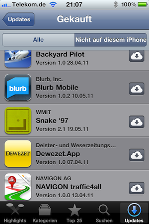 Zudem kann man sowohl iTunes 10.3, als auch iOS ab Version 4.3 inzwischen so konfigurieren, dass auf einem Gerät getätigte Einkäufe automatisch an alle anderen entsprechend konfigurierte Geräte gepusht werden. Dies geschieht dann quasi völlig ohne User-Interaktion komplett automatisch über die iCloud.