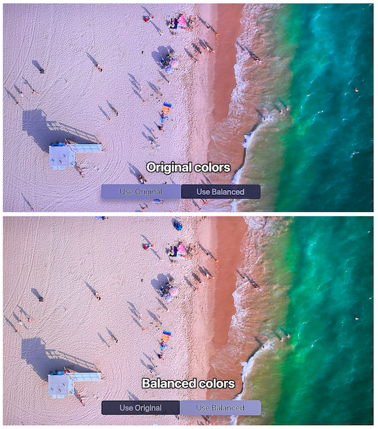 Sobald die Optimierung beginnt, zeigt das Apple TV auf dem Fernseher verschiedene Farben an, die durch die TrueDepth-Kamera des iPhone erfasst werden. Die dabei ausgewerteten Daten werden anschließend von tvOS ausgewertet und dafür verwendet, die Farbbalance zu optimieren. Zum Ende des Vorgangs bietet die Funktion sogar noch einen Vergleich der Oritignal-Einstellungen mit den optimierten Einstellungen an.