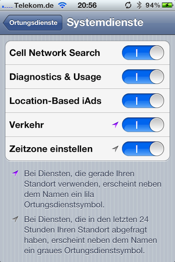 Auch in den Einstellungen selbst findet sich nun ein neuer Menüpunkt, über den man die Ortungsfunktion der systemdienste steuern kann. Interessant ist, dass dabei auch ein Punkt "Verkehr" auftaucht. Apple hatte vor einigen Wochen bereits beiläufig angekündigt, dass man an einem "Verkehrsdienst" arbeite.
