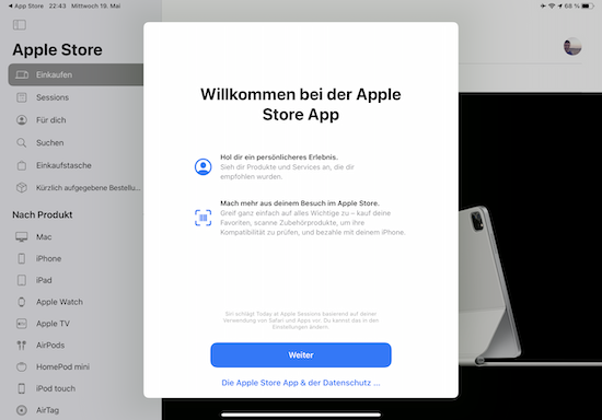 Apple hat seine hauseigene Apple Store App in der vergangenen Nacht mit einem Update versehen, welches vor allem für iPad-Nutzer interessant ist. Hier bringt die App für den komfortablen und touchbasierten Einkauf im Apple Online Store nämlich ein komplett neues Design mit. Dieses basiert in erster Linie auf einer neuen Navigationsleiste auf der linken Seite der App, über die sich die verschiedenen Bereiche und Funktionen nun noch schneller aufrufen lassen. Neben dem Zugriff auf die einzelnen Produktkategorien gelangt man hier auch zu den "Today at Apple" Sessions, seinen Favoriten oder die Bestellhistorie. Das Update kann ab sofort aus dem AppStore geladen werden.