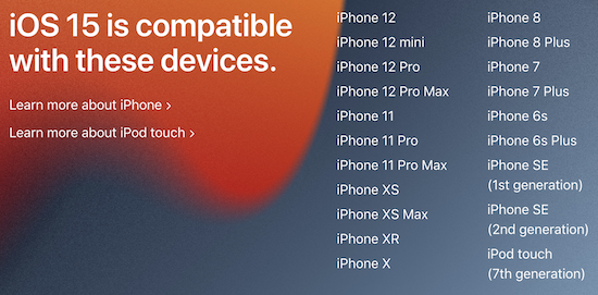 Apple veröffentlicht Kompatibilitätsliste für iOS 15, iPadOS 15 und watchOS 8