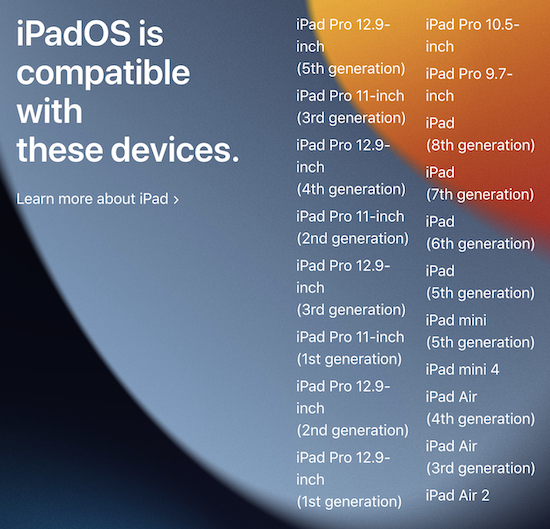 Auch beim iPad werden von iPadOS 15 sämtliche Geräte unterstützt, die auch bereits mit iPadOS 14 kompatibel waren.