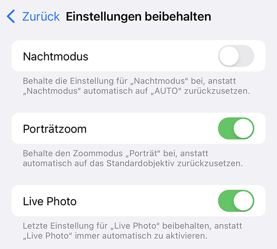Neue Einstellung unter iOS 15 deaktiviert auf Wunsch dauerhaft den Nachtmodus der Kamera
