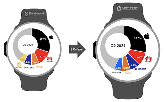 Die Apple Watch dominiert auch im zweiten Quartal 2021 den Smartwatch-Markt