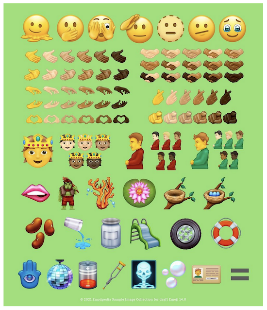 Jahr für Jahr wird das Angebot an zur Verfügung stehenden Emojis weiter ausgebaut. Da macht auch das Jahr 2021 keine Ausnahme. So hat das Unicode Consortium nun die neuen Bildchen für die diesjährige Emoji-Version 14.0 veröffentlicht, und die Kollegen von Emojipedia haben diese auch direkt online gestellt. Die finale Version dürfte im Laufe des Jahres dann auch auf dem iPhone zur Verfügung stehen, auch wenn mir zunehmend die Fantasie fehlt, wie man künftig einen sinnvollen Zugriff auf die Bibliothek der kleinen Bildchen realisieren möchte. Die finale Version von Emoji 14.0 wird für September erwartet.