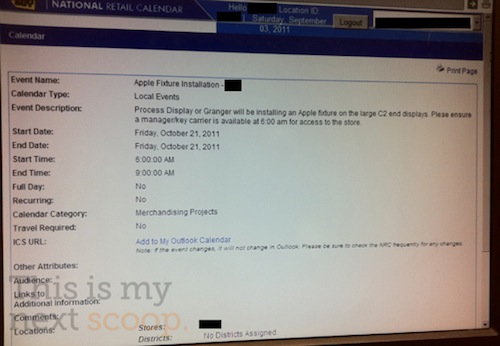 Unterdessen haben die Kollegen von This is my next ein internes BestBuy-Dokument aufgetan, in dem von einer "Apple Fixture Installation" am Freitag, dem 21. Oktober die Rede ist, bei der schon zu früher Morgenstunde ein hochrangiger Manager anwesend sein soll. Ein ähnliches Vorgehen habe es bereits beim iPhone 4 gegeben. Am 10. Oktober soll es zudem ein Meeting geben, bei dem über "upcoming BIG release dates" gesprochen werden soll.