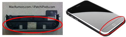 Darüber hinaus ist mir ein weiteres kleines Detail aufgefallen, welches mit dem rein touch-basierten Homebutton zusammenhängt. Und zwar gab es vor einigen Wochen Bilder von iPhone-Bauteilen, die auf den Wegfall des mechanischen Buttons deuteten. Dieses Bauteil findet sich mit ein bisschen Fantasie auch in dem Mockup (?) aus Spanien wieder. Was dem Gerät allerdings fehlt, ist die vermutete leichte Tropfenform des iPhone 5, sowie der LED-Blitz auf der Rückseite...