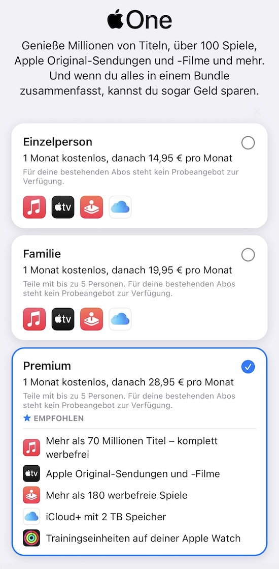 Apple One Premium ab sofort auch in Deutschland, Österreich und der Schweiz verfügbar