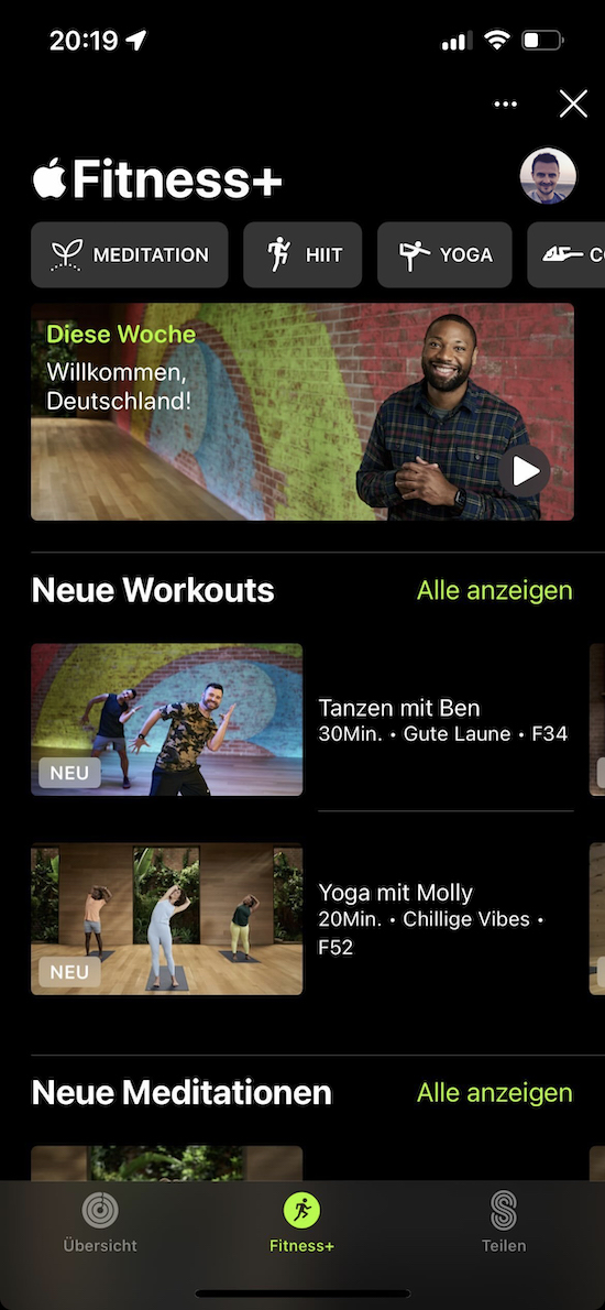 Der Roll-Out erfolgt offenbar stufenweise, so dass es bei einzelnen Nutzern ein bisschen dauern kann, ehe die Option für Apple Fitness+ angezeigt wird. Hier ist also unter Umständen ein wenig Geduld gefordert. In manchen Fällen hilft ein Neustart des Geräts, damit Apple Fitness+ in der Fitness-App auftaucht.