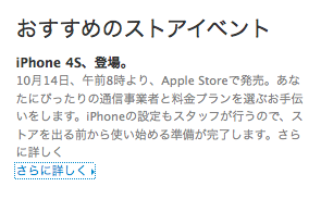 Da scheint ein japanischer Apple-Webentwickler wohl ein wenig voreilig gwesen zu sein. Auf den Retail Seiten des Landes taucht nämlich bereits der Verkaufsstart des iPhone 4S auf. Wie erwarte, wird das Gerät dort ab dem 14. Oktober zu haben sein. Es darf davon ausgegangen werden, dass Apple diesen Verkaufsstart auch hierzulande anpeilt. Weiter offen ist hingegen, ob es eine Option zur Vorbestellung geben wird. Der auf dem Screenshot zu sehende Text wird vom Google Translator wie folgt übersetzt: "iPhone 4S, erschienen. 14. Oktober, ab 08.00 Uhr im Apple Store zu