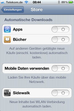 ? Automatisches Laden von Apps und Büchern; Verzeichnis aller Käufe
