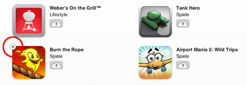 in iTunes bewegt man einfach die Maus über die App und klickt dann auf das erscheinende X