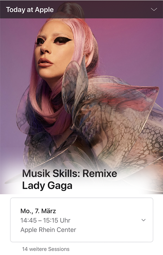 Während die Rückkehr der Google-Mitarbeiter an ihre Arbeitsplätze Anfang April heute Morgen bereits zu der Überlegung geführt hatte, ob auch Apple diesem Beispiel in Kürze folgen wird, kehrt an anderer Stelle so etwas wie Normalität zurück. So hat Apple nun angekündigt, dass man zur Präsenz der beliebten "Today at Apple" Sessions in den Apple Retail Stores zurückkehren wird. Dies gilt sowohl in den USA, als auch hierzulande, wie am unten eingebundenen Screenshot zu sehen ist. Der Startschuss hierfür fällt am kommenden Montag, den 07. März und Apple widmet sich dabei dem "Women's History Month" in den USA. Als erste Workshops wurden dabei 30-minütige Remix-Sessions mit GarageBand angekündigt, bei der man den Lady Gaga Song "Free Woman" neu mischen kann.