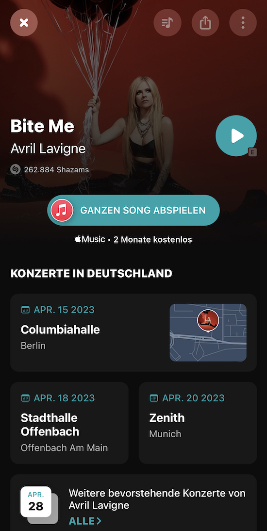Shazam zeigt zu erkannter Musik nun auch Tour- und Konzerttermine der Künstler an
