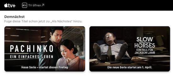 Apple TV+ Webseite ab sofort mit eigenem "Up Next" Bereich