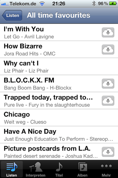 1. Streaming der Titel ohne Download sollte zumindest mit WiFi Verbindung möglich sein (dann kann ich den begrenzten Speicherplatz meiner iOS Geräte andersweitig benutzen)