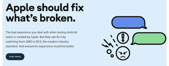 Das Thema USB-C hatten wir heute Nachmittag bereits in den News. Doch nicht nur hier steht Apple unter Druck, um sich unter anderem in der EU einem einheitlichen Ladestandard für elektronische Kleingeräte anzuschließen. Auch das Thema Interoperabilität zwischen den etablierten Instant Messengern steht nach wie vor auf der Tagesordnung. Und nicht nur die EU drängt Apple hier zum handeln, auch Googles Android-Team fordert Apple nun auf der jüngst gestarteten Webseite "Get the Message" ganz öffentlich auf: "It's time for Apple to fix texting". Damit meint man, dass Apple die sogenannten "Rich Communication Services" (RCS) in iMessage unterstützen soll. Dies ist nicht das erste Mal, dass dies geschieht. Apple hat auf die Aufforderungen bislang jedoch noch nicht reagiert.