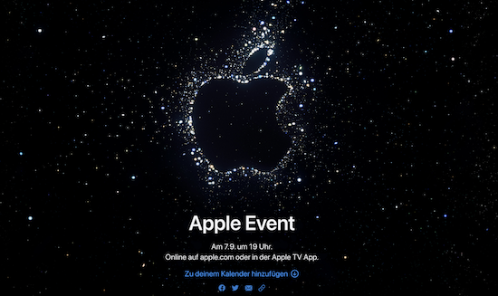 Selbstverständlich kann man das Event aber auch in diesem Jahr wieder über Apples Events-Webseite auf einem Mac, iPhone, iPad, PC oder jedem anderen internetfähigen Gerät mitverfolgen. Die Events Webseite funktioniert mit Safari, Chrome, Firefox und weiteren gängigen Browsern. Auch dort kann man sich übrigens eine Kalendererinnerung erstellen lassen. Auf dem Apple TV, aber auch auf dem iPhone, iPad, Mac und dieversen Smart TVs steht der Livestream darüber hinaus inzwischen auch über Apples TV-App zur Verfügung. Am Event-Tag tauchen hier die inzwischen Banner an prominenter Stelle auf.