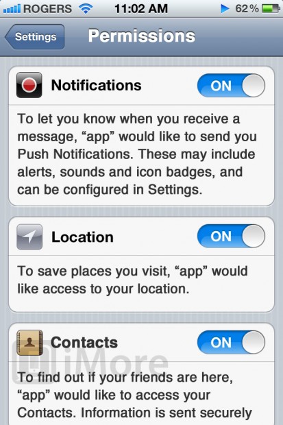 Bleibt also die Feststellung, dass es die totale Sicherheit nicht geben wird. Zumindest nicht im Einklang mit Benutzerfreundlichkeit. Insofern muss also ein Mittelweg gefunden werden, der beide Seiten zumindest einigermaßen zufriedenstellt. Generell den Zugriff zu blockieren würde einigen Apps schlichtweg ihre Existenz rauben. Jeden Zugriff bestätigen zu lassen, würde den User nach kurzer Zeit extrem nerven. Die initiale Bestätigung des Zugriffs könnte zumindest den Zugriff von funktionsfremden Apps weitgehend unterbinden. Fakt ist, ohne eine entsprechende Userabfrage und damit auch eine kurze Ersteinrichtung wird es künftig nicht mehr gehen. Einen interessanten Ansatz hierfür liefern die (zuletzt von mir gescholtenen) Kollegen von iMore. Ein entsprechender Einrag in den iOS-Einstellungen würde sich gut in die Umgebung einfügen und dem Nutzer umfangreiche Konfigurationsmöglichkeiten bereitstellen.