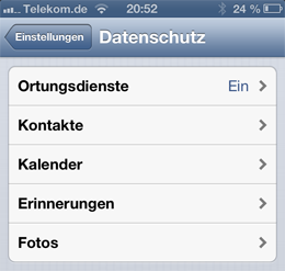 Die neuen Datenschutz-Optionen ermöglichen ziemlich feingranulare Einstellungen welche App auf welche Informationen zugreifen kann. Diesen Zugriff kann man dort jederzeit aktivieren oder deaktivieren. Zudem fragen Apps nun nicht mehr nur bei der Nutzung der Ortungsdienste, sondern auch beim Zugriff auf Adressbuch, Kalender, Erinnerungen und Fotos.