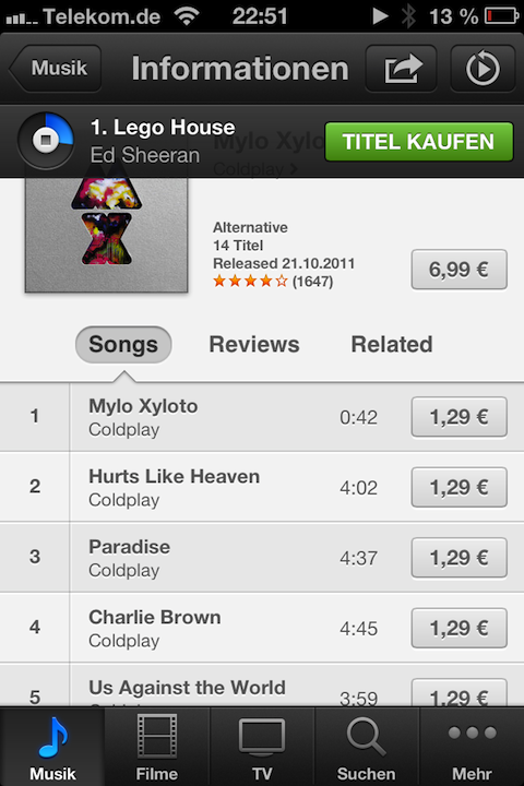 Da wären zum Beispiel die endlich verfügbaren Mail-Signaturen für verschiedene Accounts. Oder der auf die oberste Ebende der Einstellungen gewanderte Bluetooth-Schalter. Oder auch die Tatsache, dass man inzwischen nicht mehr aus dem AppStore geworfen wird, wenn man ein Update installiert oder eine neue App herunter lädt. A propos Updates, hierfür ist nicht einmal mehr die Eingabe des Passworts nötig. Im iTunes Store kann man nun auch die Vorschau eines Titels starten und trotzdem weiter im Store stöbern. Brach dabei bislang die Wiedergabe der Vorschau ab, läuft sie nun weiter, blendet sich dezent ein und erhält so die Möglichkeit, von dort aus direkt den Titel zu erwerben. (mit Dank an Lorenz für den Hinweis!)