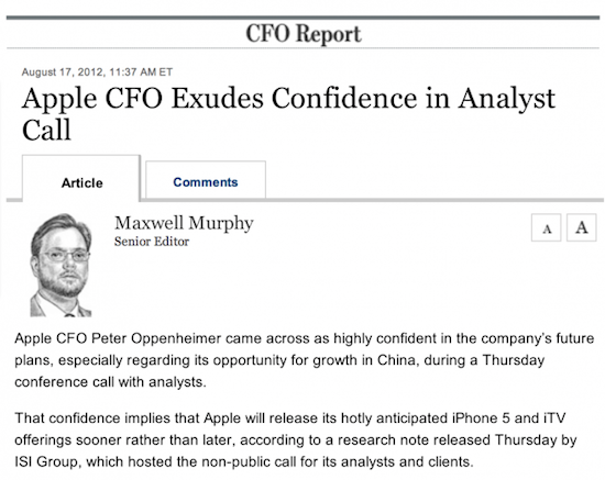 Unterdessen strahlte Apple CFO Peter Oppenheimer offenbar in einem Conference Call mit ISI Group großen Optimismus mit Blick auf Apples Zukunft aus, was dort ebenfalls als Hinweis für den Fernseher gedeutet wird. (via 9to5Mac)