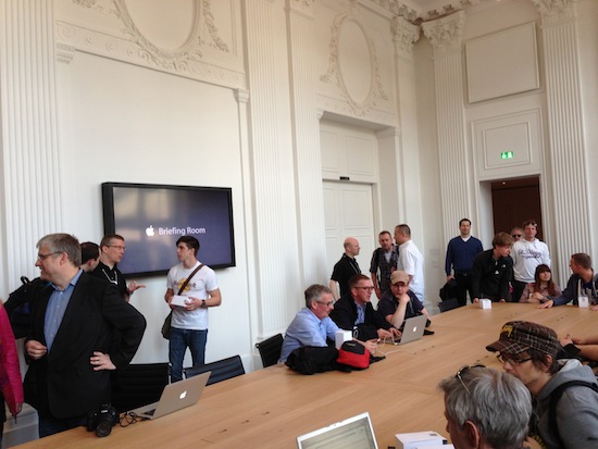 Lange hat die Hauptstadt auf ihren ersten Apple Store warten müssen. Viereinhalb Jahre nachdem der erste Store in Deutschland in der Münchner Rosenstraße öffnete, war es gestern nun aber soweit. Als elfter deutscher Store nach Hamburg (2x), München, Frankfurt, Dresden, Köln, Sindelfingen, Oberhausen, Sulzbach und Augsburg eröffnete Deutschlands größter Store um 17:00 Uhr am Kurfürstendamm. Bei herrlichem Wetter bildete sich schon früh eine stattliche Schlange vor dem Store und die Polizei sperrte sogar extra eine Spur des Ku'damms. Die ersten 4.500 Besucher erhielten zur Begrüßung ein schwarzes T-Shirt mit der Aufschrift "Apple Store Kurfürstendamm Berlin" wobei die entsprechenden Silben hervorgehoben werden, dass ein "Apple für Berlin" hervorsticht. Der Store ist mit Sicherheit der aktuell schönste und beeindruckendste in Deutschland. Äußerst großzügig mit viel Holz, Stein und einer hohen Decke präsentiert sich der Verkaufsraum im Erdgeschoss. In einer Ecke führt eine rote Treppe (nein, keine gewohnte Glastreppe) in die höher gelegenen Räume des ehemaligen Kinos. Hier findet man, ebenfalls sehr großzügig ausgelegt, einen Besprechungsraum (Briefing Room) und einen Saal für Präsentationen und andere Veranstaltungen. Unter anderem ist hier am heutigen Abend der Sänger Passenger (Link in den iTunes Store) zu Gast. Apple hat sich augenscheinlich größte Mühe gegeben, sowohl die insgesamt 5.000 qm Innenfläche, als auch die Außenfassade stilgerecht aufzuarbeiten, so dass der Store eine wahre Augenweide und absolut einen Besuch wert ist. Abschließend ein paar Impressionen von der Eröffnung. (mit Dank an Kai für einen Teil der Bilder!)