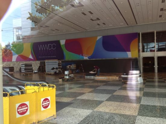 UPDATE, 05. Juni, 07:58 Uhr: Inzwischen haben auch am Moscone West die Dekorationsarbeiten für die WWDC begonnen. Die Kollegen von 9to5Mac zeigen einen Banner im Inneren des Gebäudes auf dem neben den farbenfrohen Logos von der Einladung offenbar auch das Motto der diesjährigen Entwicklerkonferenz zu sehen ist. Der Satz "Where a whole new world's developing." steigert ein weiteres Mal die Vorfreude auf das in fünf Tagen beginnende Event. Man darf sicherlich gespannt sein, was Apple alles aus der Schublade zaubert.