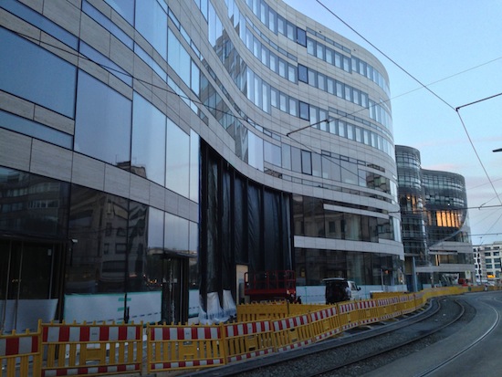 Die Tatsache dass Düsseldorf einen Apple Store im neuen Kö-Bogen bekommt, ist zwar noch nicht offiziell von Apple bestätigt. Es bestehen aber kaum noch Zweifel daran, dass dem so sein wird. Inzwischen wird auch immer deutlicher, wann es wohl soweit sein wird. So wurde nun die Eröffnung des Kö-Bogens auf den 17. Oktober terminiert. Damit kann davon ausgegangen werden, dass an diesem Tag auch der Apple Store eröffnet wird, so wie es beispielsweise auch bei der Altmarktgalerie in Dresden der Fall war. Bereits Anfang Mai wurde überraschenderweise ein großes Apple Logo in der erwarteten Location gesichtet. Die zugehörige gelbe Ladenfläche Nr. 5 wird nun interessanterweise anders als bei den anderen Flächen lediglich mit "Vermietet. N.N." gekennzeichnet. Auch wenn die offizielle Bestätigung von Apple noch aussteht, dürfte damit nun also endgültig alles klar sein. Abschließend noch ein paar Bilder von der aktuell noch schwarz verhüllten Baustelle am Kö-Bogen mit Dank an Dirk für die fortwährende, bebilderte Berichterstattung aus Düsseldorf.