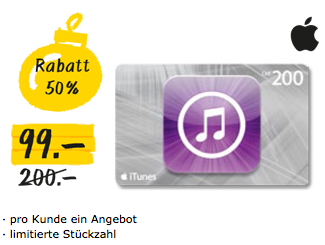und AppStore-Karten mit einem aufgedruckten Wert von CHF 200,- zum halben Preis an, man zahlt