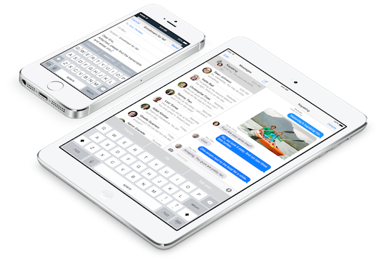 Der Doppelklick auf den Homebutton wird in iOS 8 mit einer weiteren Funktionalität ausgestattet und zeigt nun neben den zuletzt geöffneten Apps auch die zuletzt kontaktierten Personen an. Ein Tap auf eine hier gelistete Person eröffnet die Möglichkeit, einen Anruf auszulösen oder ihr eine Nachricht zu schicken. Das im Rahmen der Ankündigung von OS X vorgestellte iCloud Drive kommt natürlich auch zu iOS und wird in verschiedene Apps integriert. Entwickler können es aktuell mit den Beta-Versionen von Keynote, Pages und Numbers testen. Die Nachrichten-App erhält neue Funktionen für Gruppenchats. So kann man künftig ein "Bitte nicht stören" auf Chat-Basis aktivieren oder seinen Standort versenden. Mit Swipe-To-Talk lassen sich Sprach- und Videonachrichten verfassen und verschicken. Hierzu hält man den entsprechenden Button gedrückt und wischt nach oben wenn man fertig ist. iMessage Sprachnachrichten können zudem vom Lockscreen abgerufen werden, indem man das gesperrte iPhone ans Ohr hält.