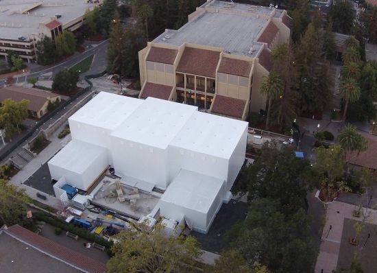 Abschließend, zur endgültigen Steigerung der Vorfreude und in kleiner Anspielung auf die Gerüchte um eine Beteiligung der irischen Kult-Band U2 an dem anstehenden Event, noch ein kurzer Blick auf die beeindruckende Bühnenkonstruktion, die Apple derzeit vor dem Flint Center errichten lässt, aufgenommen von einer Drohne. Sieht für mich irgendwie nach Konzertbühne aus, auch wenn ein U2-Sprecher inzwischen gegenüber der irischen Webseite Independent.ie die Gerüchte dementierte: "They are not releasing their album on the iPhone, and they are not performing at the iPhone launch."