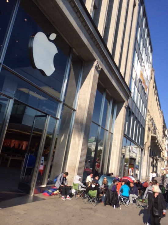Seit 08:00 Uhr haben die Apple Stores heute hierzulande ihre Türen geöffnet. Die ersten halten also bereits ihr neues iPhone 6 oder iPhone 6 Plus in den Händen. Auch der Versand von Vorbestellungen läuft meinen Informationen nach planmäßig, so dass so gut wie alle rechtzeitig bestellten Geräte heute per Hermes, UPS oder DHL den Weg zu ihren neuen Besitzern finden sollten. Wie aus den vergangenen Jahren bereits bekannt, spielten sich vor den Stores auch beim Verkaufsstart des iPhone 6 die bekannten Bilder ab. Warteschlangen wohin das Auge blickt. Dabei wird zwischen solchen unterschieden, die sich für einen Spontankauf bildeten und solchen, die aus Kunden bestehen, die ihr vorbestelltes Gerät in einem Store abholen wollen. Damit die Warterei ein wenig erträglicher wird, verteilt Apple auch in diesem Jahr wieder Kaffee und Wasser an seine Kunden. Neu ist in diesem Jahr die Ausgabe eines digitalen "Reservation Pass", der die Pappkarten der vergangenen Jahre ersetzt.