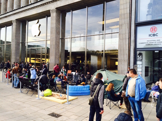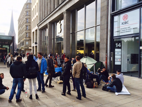 bildeten und solchen, die aus Kunden bestehen, die ihr vorbestelltes Gerät in einem Store abholen wollen. Damit die Warterei ein wenig erträglicher wird, verteilt Apple auch in diesem Jahr wieder Kaffee und Wasser an seine Kunden. In Anbetracht der Länge der weltweiten Warteschlangen sollte man in jedem Fall früh vor Ort gewesen sein, wollte man heute noch ein neues Gerät erhalten. Beide Geräte dürften allerdings in größeren Stückzahlen vorliegen, als dies noch im vergangenen Jahr der Fall war.