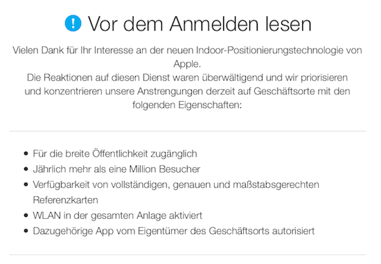 Bereits seit einiger Zeit setzt Apple unter anderem in seinen eigenen Retail Stores iBeacons für die Indoor-Lokalisierung ein. Während dies auch weiterhin zur genaueren Bestimmung der Position innerhalb von Gebäuden genutzt werden dürfte, benötigt die neue Technologie wie erwähnt keine zusätzliche Hardware, was eine zusätzliche Barriere aus dem Spiel nehmen würde. Offensichtlich muss die App allerdings erst für ein bestimmtes Gebäude und für bestimmte Benutzer aktiviert werden, damit sie auch wirklich genutzt werden kann.