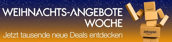 Und last but not least ist auch Amazon nach der "Cyber Monday Woche" mit einer neuen Aktion am Start. In der "Weihnachts-Angebote-Woche" gibt es dabei wie gewohnt jeden Tag neue Tagesangebote, sowie Blitzangebote. Heute lässt sich so unter anderem beim Kauf des neuen Amazon Fire TV mit 4K Ultra HD, der elektrischen Oral-B PRO 6500 Zahnbürste mit iPhone-Anbindung, beim Fire HD 8, beim Medisana Aktionspaket mit Körperanalysewaage und Aktivitäts-Tracker (ab 14:00 Uhr), dem Bang&Olufsen BeoPlay A2 Bluetooth-Lautsprecher (ab 16:00 Uhr), dem Withings Bluetooth Blutdruckmessgerät (ab 17:00 Uhr) und dem Bose SoundTouch 30 Serie II WiFi Music System (ab 18:10 Uhr) sparen. Es gelten dabei dieselben Regeln, wie auch bei den regulären Blitzangeboten. (mit Dank an Detlef!)
