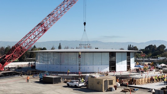 Der eine oder andere wird es noch im Hinterkopf haben: Apple baut derzeit in Cupertino seinen Campus 2, aufgrund seiner Form auch gerne UFO genannt. Alle paar Tage überschwemmen neue Überflugvideos von Drohnen die einschlägigen Videoportale wie YouTube und Co. Nun hat Apple erstmals eigene Bilder öffentlich gemacht und den Kollegen von Mashable zur Verfügung gestellt. Besonderes Augenmerk wurde dabei auf das neue Auditorium gelegt, in dem Apple künftig seine Keynotes und Produktvorstellungen abhalten wird. Das auf den Namen "Theatre" hörende Gebäude misst satte 11.000 qm und soll bis zu 1.000 Personen Platz bieten. Während die Haupthalle unterirdisch liegt, bietet die überirdisch liegende Lobby Dank seiner runden Glaskonstruktion einen 360°-Blick über den gesamten Campus. Apple selbst hebt vor allem die Dachkonstruktion hervor. Sie wiegt 80 Tonnen, wurde in Dubai gebaut und anschließend nach Cupertino gebracht. Das Dach wurde im vergangenen Monat angebracht und ist laut Apple das größte Kohlenstofffaser-Dach, das jemals gebaut wurde.