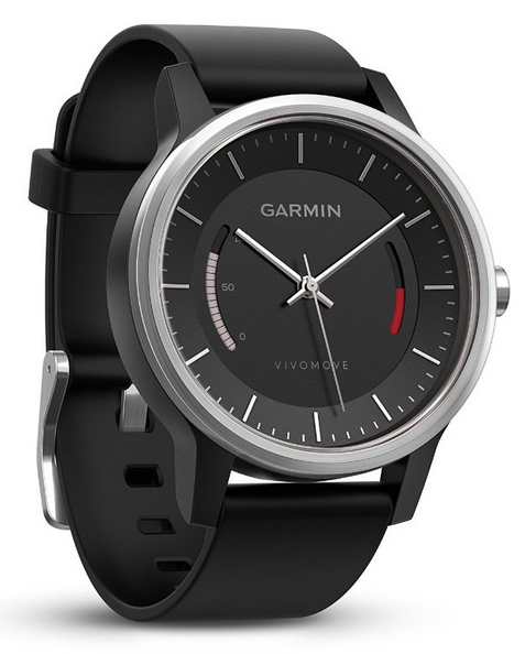 Ebenfalls neu erhältlich ist der Garmin Vivomove (€ 169,99 bei Amazon). Hierbei handelt es sich um einen Fitnesstracker in der Optik und dem Stil einer analogen Armbanduhr, der ein wenig an den Withings Acitivité Pop (€ 138,90 bei Amazon) erinnert. Auch der Vivomove bietet sämtliche Funktionen, die man von einem Standard-Fitnesstracker erwartet. Dies beinhaltet einen Schrittzähler und einen Beschleunigungssensor, der unter anderem das Berechnen von Distanzen beim Joggen berechnen kann. Behält man die Uhr auch nachts am Handgelenk, erfasst und analysiert sie zudem auch den Schlaf. Über eine weiße und eine rote gebogene Leiste auf dem Ziffernblatt informiert die durchaus chic gestaltete Uhr direkt über die am Tag zurückgelegten Schritte und die inaktive Zeit. Zudem werden die aufgezeichneten Fitnessdaten natürlich auch an die Garmin Connect App (kostenlos im AppStore) auf dem iPhone übertragen und dort noch einmal deutlich informativer aufbereitet. Der Datenabgleich wird dabei über Bluetooth Low Energy realisiert. Ausgestattet mit einer Knopfzelle soll die Uhr bis zu einem Jahr lang durchhalten. Zudem verfügt sie auch über ein wasserdichtes Gehäuse, kann also auch beim Schwimmen getragen werden.