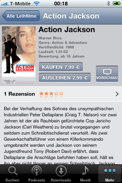 Eben wurde es noch auf der WWDC Keynote angekündigt, nun ist das Feature verfügbar. Mit der GoldMaster-Version von iPhone OS 3.0 (derzeit nur für registrierte Entwickler verfügbar) stehen Filme, TV-Sendungen, Musikvideos und iTunes U nun auch über den mobilen iTunes Store zum Kaufen und Leihen bereit. Hierzu hat sich der gesamte mobile iTunes Store leicht verändert, wie auf den unten angehängten Screenshots zu sehen ist. Der Video-Download ist sowohl über WiFi, als auch über das Mobilfunknetz von T-Mobile verfügbar. Wie lange ein solcher Download allerdings im EDGE-Netz dauern soll, sei mal dahingestellt. Erste Hinweise auf dieses Angebot kamen bereits Mitte April auf und haben sich dann Mitte Mai noch weiter verdichtet. Spätestens mit Veröffentlichung von iPhone OS 3.0 am 17. Juni wird dann jeder die Möglichkeit haben, Filme auch direkt über iPhone und iPod touch kaufen zu können (zumindest in den Ländern, in denen es das Film- und Fernseh-Angebot gibt). Die Preise entsprechen dabei natürlich denen im herkömmlichen iTunes Store.