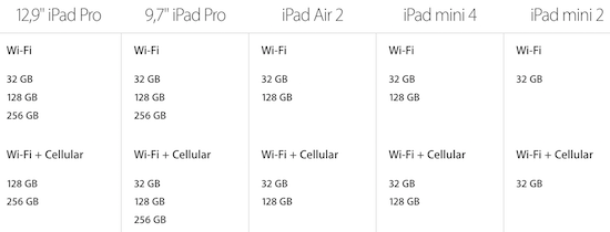 Apple erhöht Speicherplatz beim iPad Air 2, iPad mini 4 und iPad mini 2