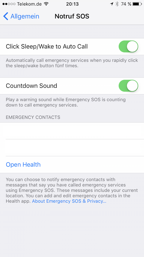 UPDATE: Wie es aussieht, ist die SOS-Funktion auch in Deutschland verfügbar. Zumindest lässt sie sich auch hierzulande durch einen fünffachen Druck auf den Powerbutton auslösen. Bevor der Notruf ausgelöst wird, zählt ein Countdown von 3 herunter, jedes Mal begleitet von einem lauten Signalton.